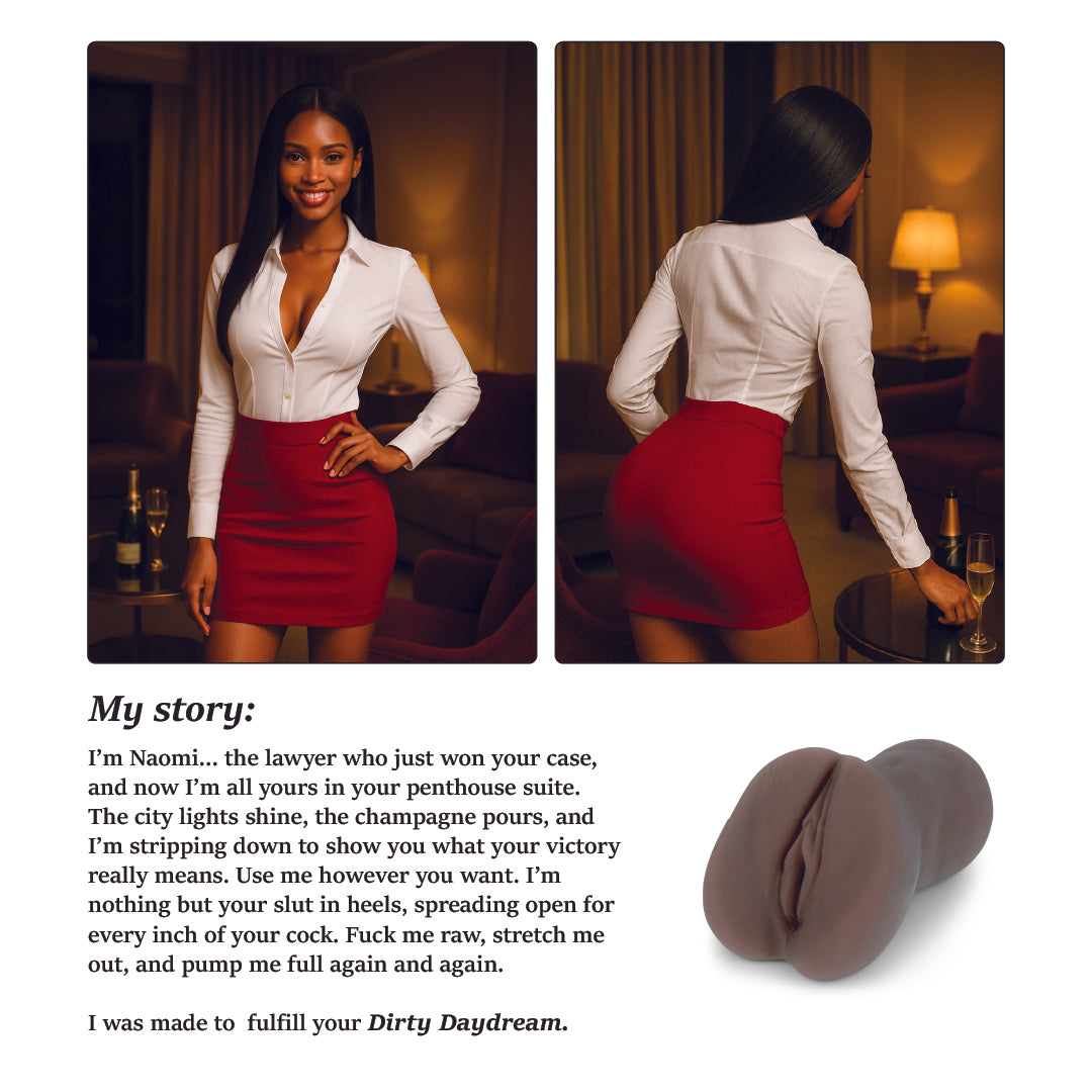 I’m Naomi… the lawyer who just won your case, and now I’m all yours in your penthouse suite. The city lights shine, the champagne pours, and I’m stripping down to show you what your victory really means. Use me however you want. I’m nothing but your slut in heels, spreading open for every inch of your cock. Fuck me raw, stretch me out, and pump me full again and again.